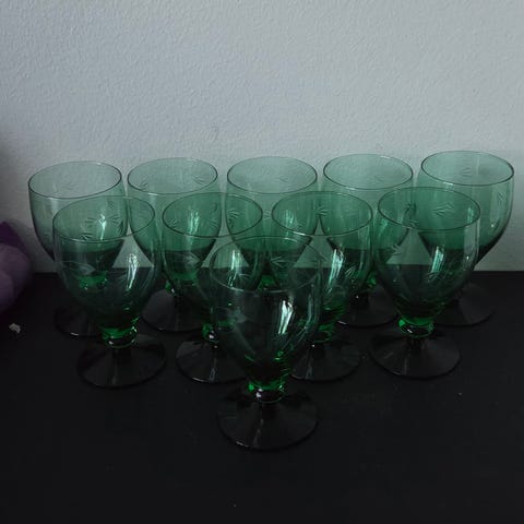 5 vinglas på knap 12 cm og 4 vandglas/ølglas på knap 12 cm fra Holmegaard. Modellen hedder Ranke.