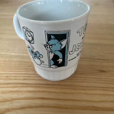 Rigtig pæn krus med Thomas & Friends. Hvid og Thomas tog figurer på siden. H: 8 cm Ø 7 cm