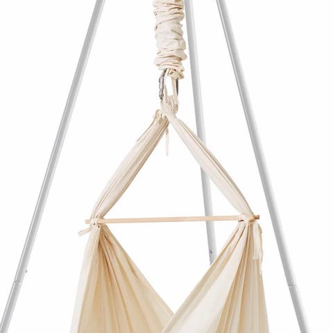 Membantu slyngevugge med motor til børn i cremefarvet stof