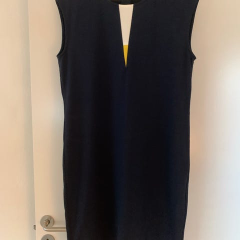 Rigtig flot og smart sort blondekjole. Blondetop med dyb halsudskæring og uden ærmer. Nederdelen er i tynd blondestof. Hele kjolen er gennemforet. Kjolelængde er ca. 112 cm.