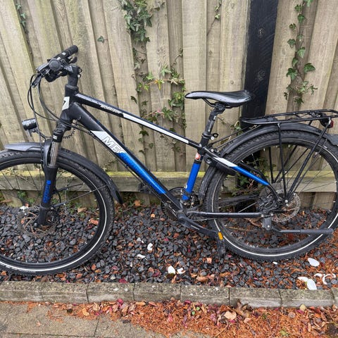 Sælger en solid og komfortabel Morrison Mescalero S26 SE mountainbike i sort/blå. En rigtig god allround-cykel, velegnet til både hverdag, pendling og lettere offroad/grusstier.