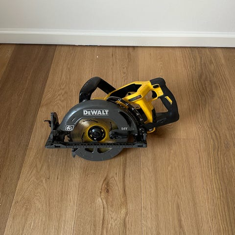 Ubrugt DeWalt DCS570 XR rundsav (solo) med en klingediameter på 184 mm. (24 tand). To ekstra klinger medfl. 30 og 40 tand. Sælges gr. fejlkøb.