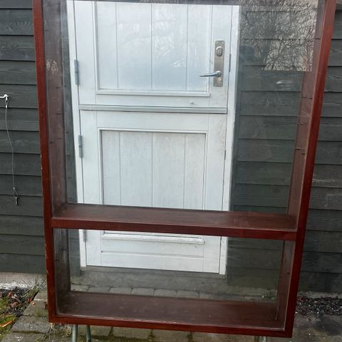 Udhængsskab/Montre i massiv teaktræ med fingersamling/kassesamling.