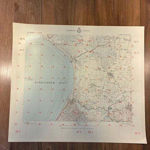 Vægkort fra 1951: Overgaard og omegn (perfekt stand)