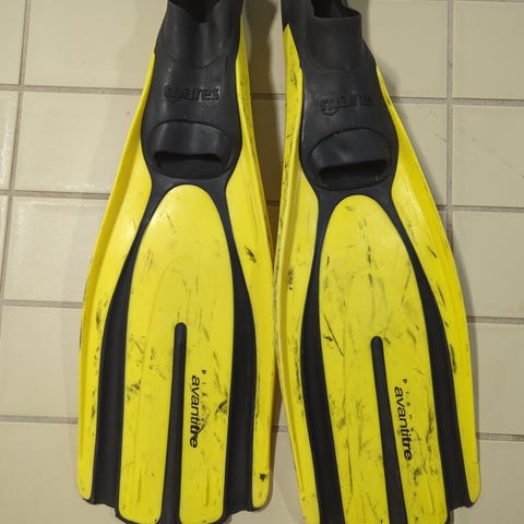 Mares Avanti Tre svømmefødder i blå og sort farve, størrelse 42-43. Fremstillet i holdbart materiale med lukket hæl. Egnet til svømning og dykning.
