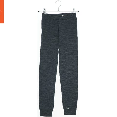 Lilla leggings til børn med elastik i taljen. Der er en dekorativ blondekant nederst ved benene.