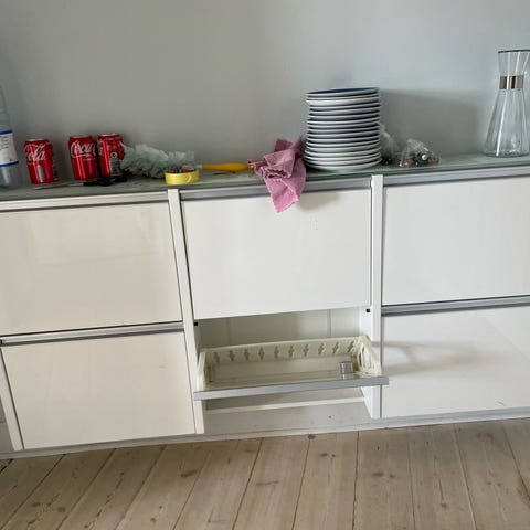 Skabet er 152,5 cm lang, 71 cm høj 18 cm dyb. Det er ét stort skab
