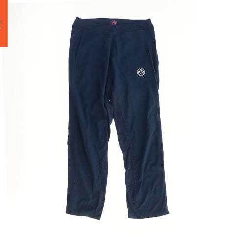 Mørkeblå træningsbukser med elastisk talje. Der er en lille logo på forsiden og en lynlåslomme på bagsiden.