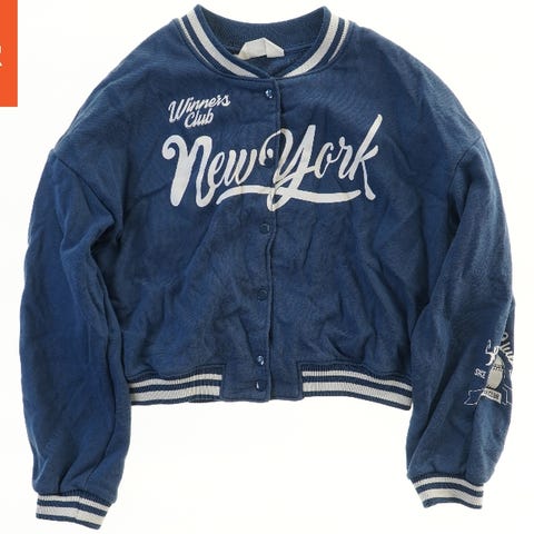 Grøn bomberjakke med sort hætte. Jakken har en lynlås foran og ribstrikkede manchetter og kant. Der er to sidelommer og en lomme på ærmet med teksten 'Urban World'.