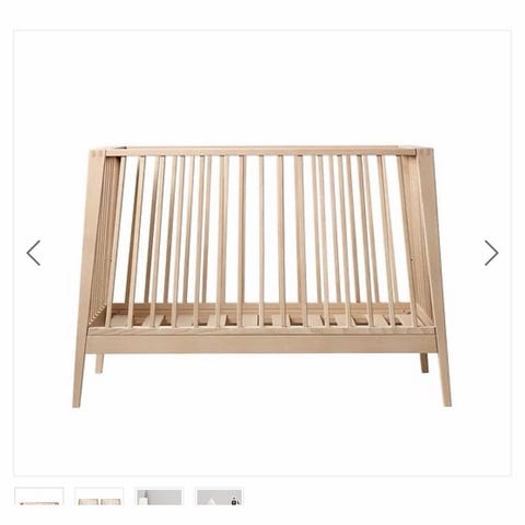 Leander Luna tremmeseng med 120x60 madras. Sengen har nogle mærker hist og her fra flytning, men er ellers i god stand.