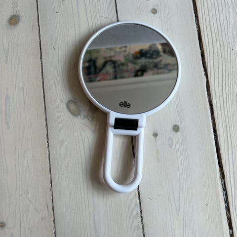 Fra TecTake. Badeværelsesspejl makeupspejl vippespejl Alm spejl på den ene side, 5xforstørrelse på den anden. Aldrig brugt. 18 dia spejl, 20 ydre mål. Fuld længde 41 cm.