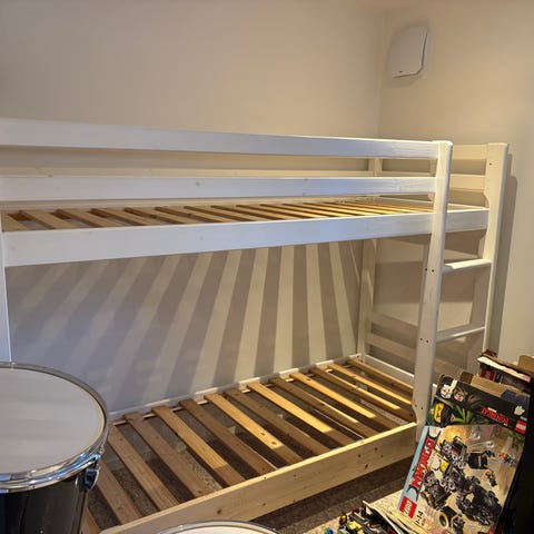 Madrasser følger med (H10), samt fin tegning fra storebror (se billede). Lagener og vådlægger lagener samt sengerand i nederste køje kan også følge med.