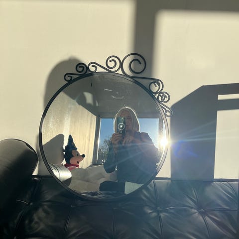 spejl med sort ramme og støtteben