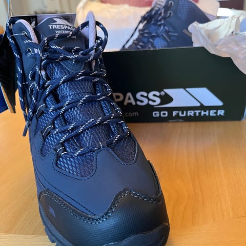 Disse sko er sorte vandrestøvler designet til kvinder. De har en længde på 26,5 cm. Skoene har snørelukning foran og en robust sål, der giver godt greb. Designet er enkelt og praktisk, hvilket gør dem velegnede til udendørs aktiviteter. Støvlerne har aldrig været brugt.