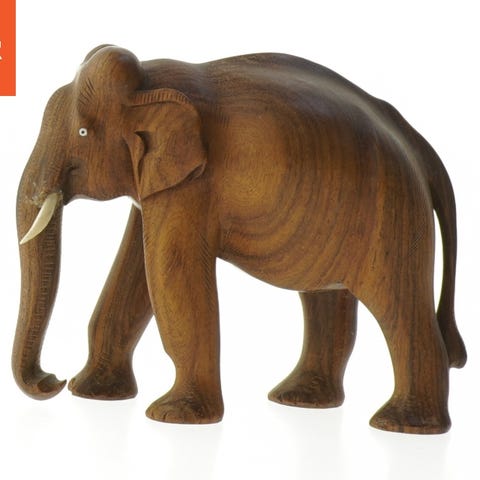 En håndlavet elefant figur skåret fra onyks sten. Figuren har en størrelse på 12x9 cm og har naturlige farvevariationer af hvid og brun gennem kroppen. Stenen giver figuren et let skinnende udseende. Den er velegnet som dekoration i hjemmet.