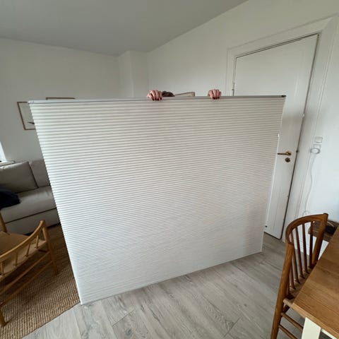 Vi sælger vores Faber plissegardiner, som er nedtaget fra et Lind & Risør hus. De fremstår i meget god stand og er en nem måde at få et gennemført udtryk og god afskærmning.