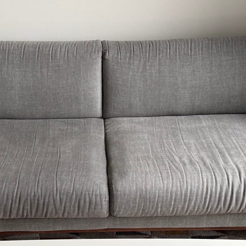 Sofaen skal væk i denne weekend. Dejlig stor flyder i høj kvalitet. Betrækket er dog synlig bleget af sol. Betrækket kan tages af opvaskes. Udgået model men nypris omkring 40.000,-