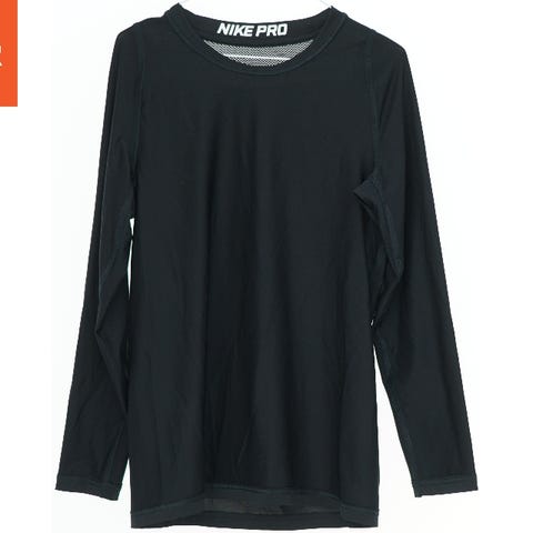 Langærmet sort trøje fra Nike med rund hals. Trøjen har et Nike-logo på forsiden i hvid. Den er designet til komfort og bevægelse.