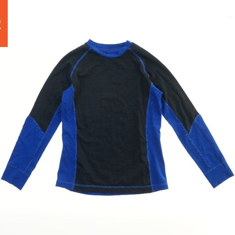 En langærmet trøje med rund halsudskæring. Forsiden har en blå farve med sorte sidepaneler og ærmer. Bagsiden er primært sort med blå ærmer. Trøjen har et lille logo på brystet.