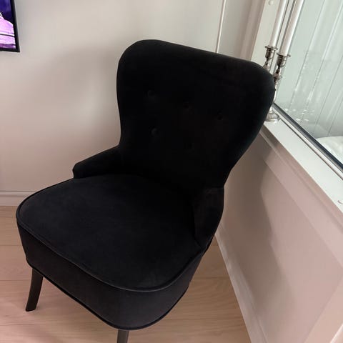 Remsta lænestol fra IKEA beklædt i mørkt velour.