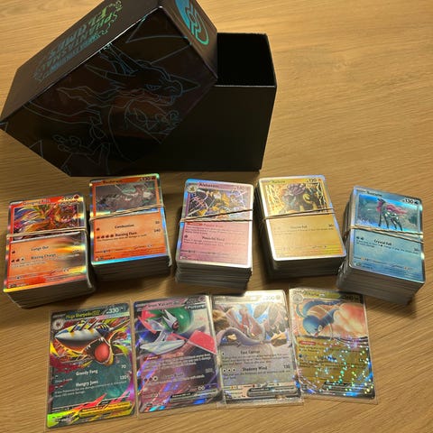 Sælger en Pokémon Elite Trainer Box (ETB) fyldt med 500 originale Pokémon-kort i flot stand – perfekt til samlere, spillere eller dig der vil have ekstremt meget for pengene.