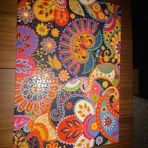 Dette er et puslespil med et sommerfugletema, der viser farverige sommerfugle i en blomstrende natur. Puslespillet er på en plade med udskårne brikker, som skal sættes sammen for at fuldføre billedet. Det måler 36,5x28,5 cm og inkluderer forskellige sommerfugle og blomsterillustrationer.