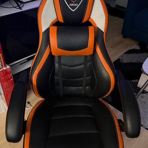 High-end gamingstol med moderne udseende, velegnet til personer med en højde mellem 165 - 200 cm, op til 125 kg, hjulløse 65mm bløde PU-hjul, 2:1 ryg/sæde tiltforhold, 4D armlæn, 120mm klasse 4 gasløft.