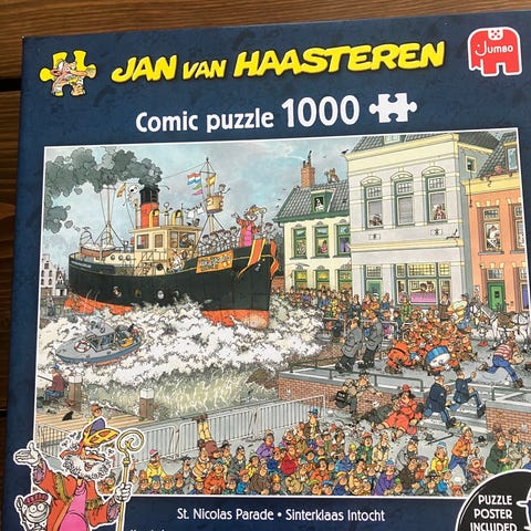 1 stk. Jan van Haasteren puslespil med 2 x 1000 brikker;