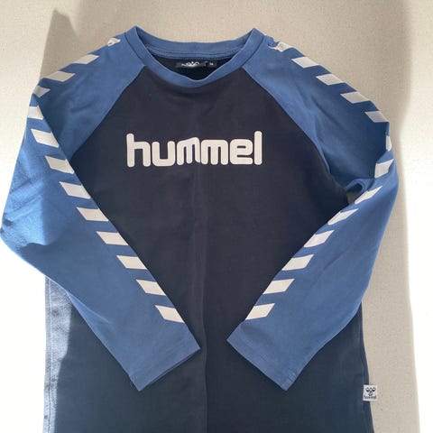 Hummel fodboldtrøje i rød farve, designet til børn i størrelse 104. Trøjen er egnet til fodbold og er fremstillet i åndbart materiale. Lillebitte trådtræk, fremstår ellers som ny.