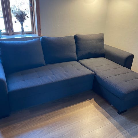En rigtig fin sovesofa som jeg skifter ud fordi den ‘vender’ forkert i forhold til min stue. Der er småpletter, men betrækket på hynderne kan tages af og vaskes. Sovemålene er 200x140 og der er kun sovet i den 10-15 gange. Købt for ca 4000 kr i Ilva i 2020.