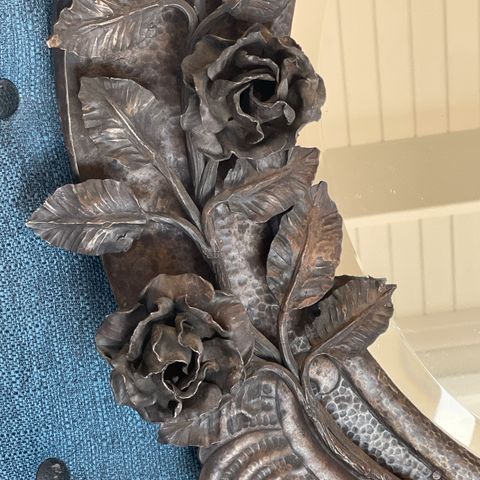 Spejl bronze look med messing kryds. Spejlet er fra 1988 men pænt. 76 x 110 cm og ca 20 10 kg. Pris kr 400.00 som er en fast pris. Sendes ikke