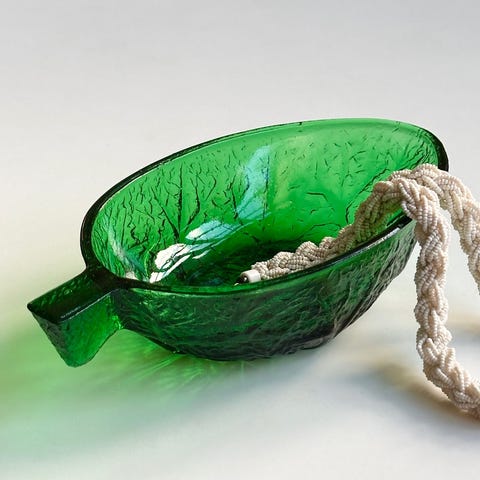 Smuk gammel lysegul glasskål fra 50-60’erne med slebne blomster motiver, som er meget dekorativ og med et flot udtryk