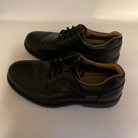 Clarks Andre sko i størrelse 38. Skoene er sorte og har en klassisk model. Materialet fremgår ikke, men skoene har en blød sål og snørebånd. Velegnede til hverdagsbrug.