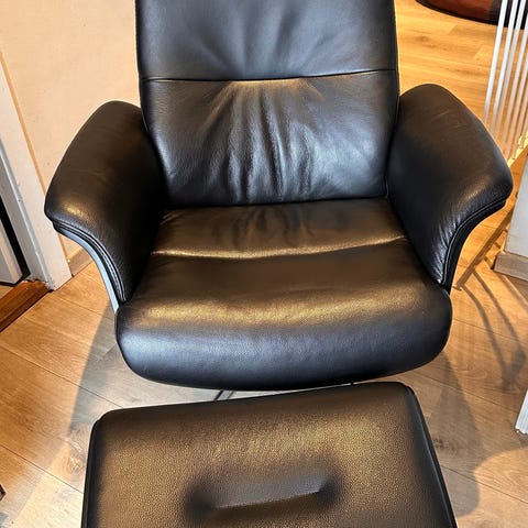 OBS! Vi har også samme stol og skammel i Large udgave nypris 25.740,- og sælges for 15.000,- se mere i mine andre annoncer)