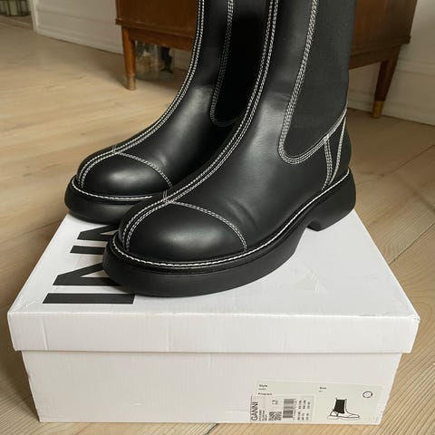 De populære, flotte GANNI Chelsea boots i mellemhøjde.