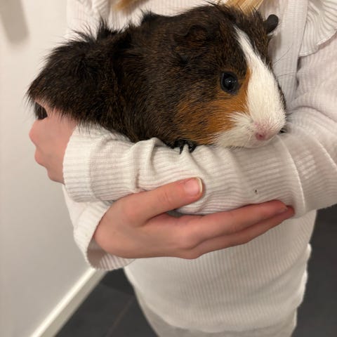 Sød lille marsvin han på 5 uger søger nyt hjem. Vi kan desværre ikke beholde ham, da han er ene han i flokken og jo snart vil begynde at blive kønsmoden.