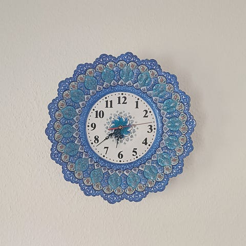Vægur med gearmotiv og romertal i sort og kobber