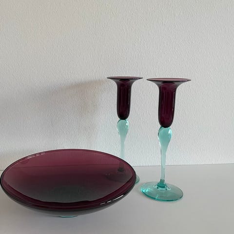 Glas fad Harlekin, aubergine/turkis.