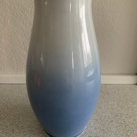 3 blåkant vaser . 2 af dem er ubrugte den 3. Er brugt. Fajance fra Bing og Grøndahl. Nr. 3098 pr. Stk. 300 samlet 800