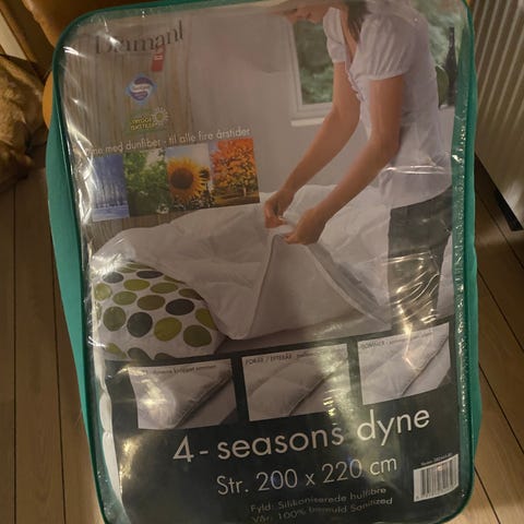 Moskusdun, nyrenset, brugt 1/2 år. Mål 240x220 cm
