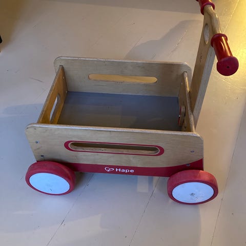 Fin lille Hape gåvogn. Den har bidraget med ufattelig mange timers leg, og den kan helt sikkert klare mange flere!