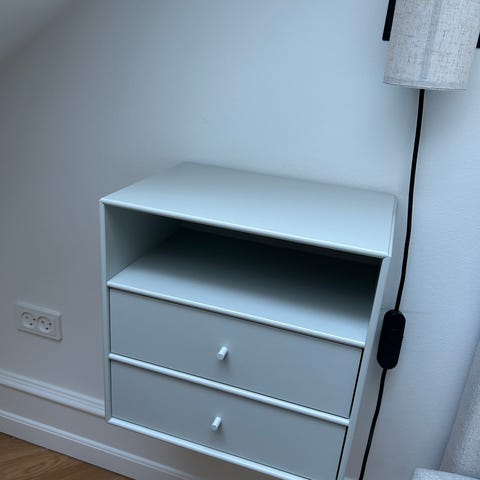 Smuk og stilren Montana Mini 1007 med tre skuffer i farven Nordic 09 (hvid) sælges. Modulet er i meget flot stand – som nyt og uden synlige brugsspor. Har været brugt som natbord (se billede).