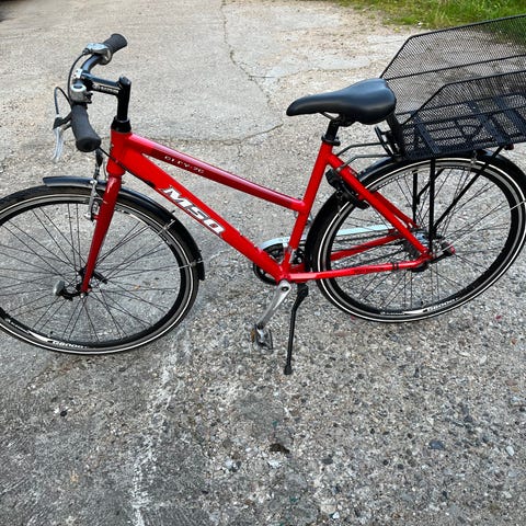 Cyklen har en lyseblå farve og er udstyret med kurv foran samt bagagebærer bagpå, lås m. 2 nøgler, lygte for og bag, gode dæk, 3 gear, rigtig fin og i orden, har været opbevaret i p kælder og derfor uden rust. Cyklen er efterset og smurt, du skal ikke lave noget ved cyklen, lige til at køre på. Den har et lavt stel for nem ind- og udstigning.