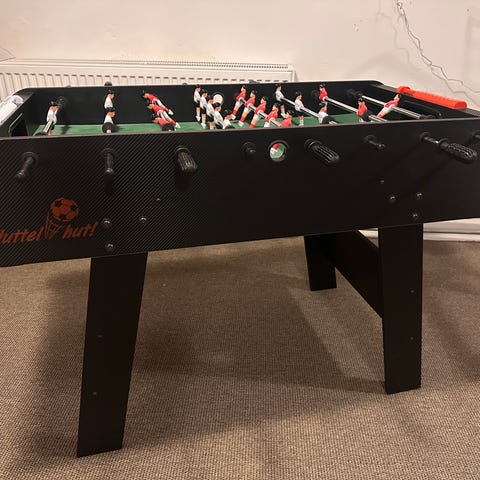 Ældre bordfodboldbord inkl. 5 bolde. Buer lidt på midten.