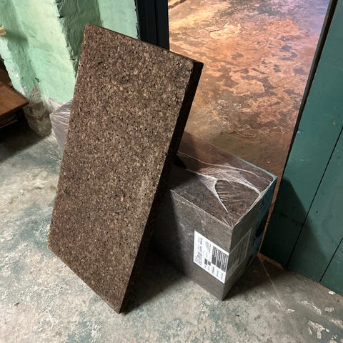 Korkplade fremstillet af korkmateriale. Pladen har en rektangulær form og en mørk farve. Kan anvendes til opslagstavle, dekoration eller andre formål, hvor en korkoverflade er ønsket.