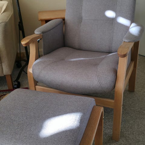 Lænestol i træ med rød polstring