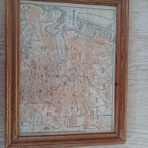 Monteret I ramme. Måler ca 32 x 23