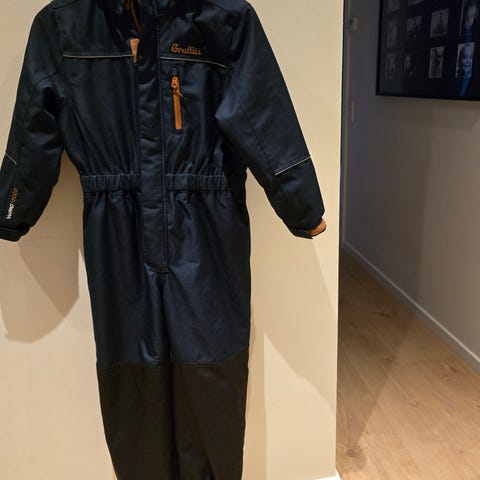 Graffiti flyverdragt i blå farve i størrelse 98-104 til drenge. Fremstillet i polyester materiale. Designet til at give beskyttelse og komfort til børn under udendørs aktiviteter.