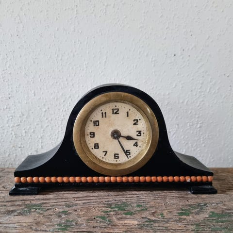 Ældre bordur, der fungerer som det skal og holder tiden. Det er et elektrisk ur, som tilsluttes via stikkontakt.