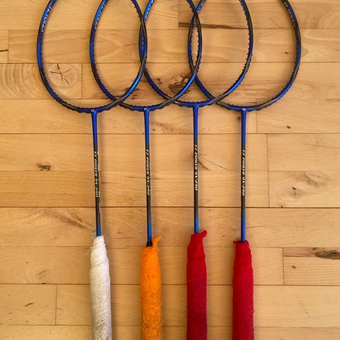 High-end badminton ketcher, med minimale brugsspor. Et enkelt afslag i lakken.